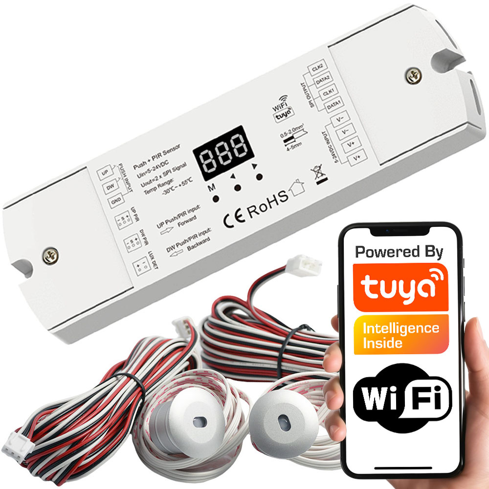 LED kontrolieris kāpnēm koridoram trepēm 5-24V SPI RGBIC 2x PIR un spilgtums SD WiFi TUYA sērija (LC044))