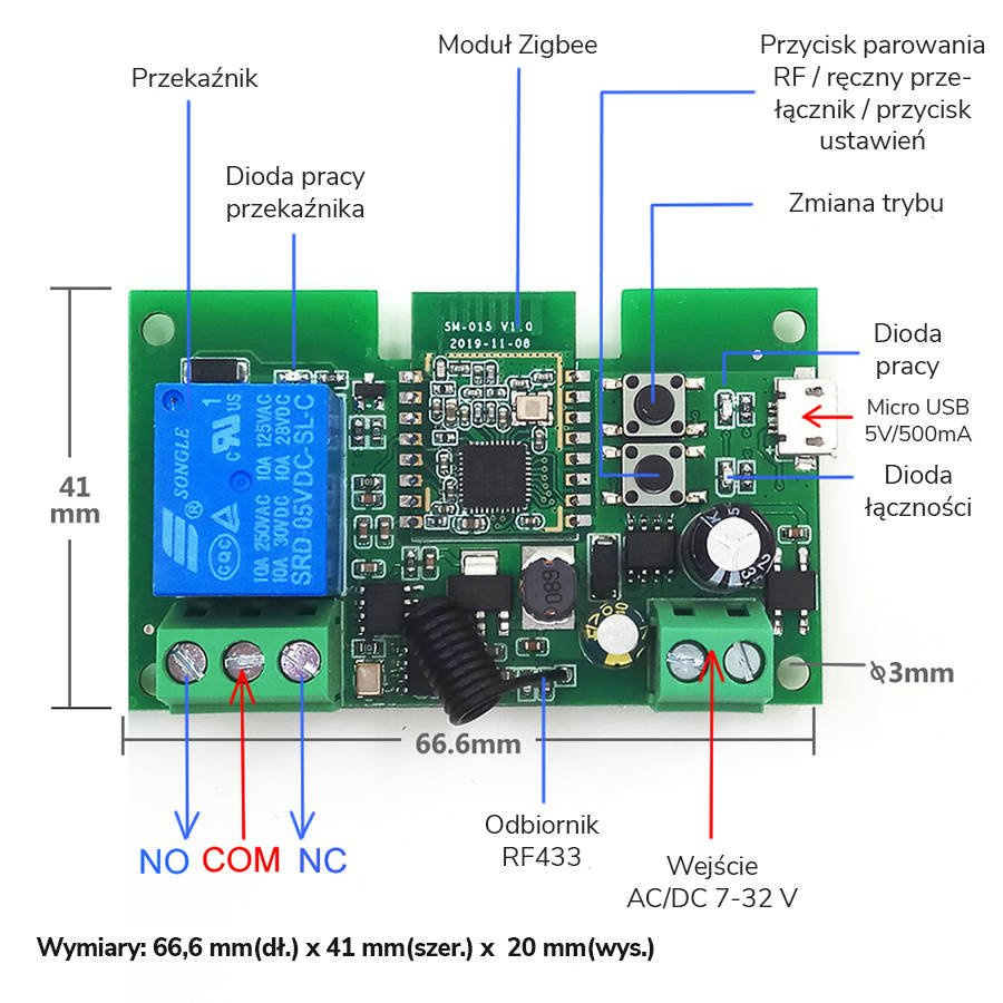 Komplektā: ZigBee + RF 433MHz kontrolieris, lietotāja rokasgrāmata (PL), iepakojums.