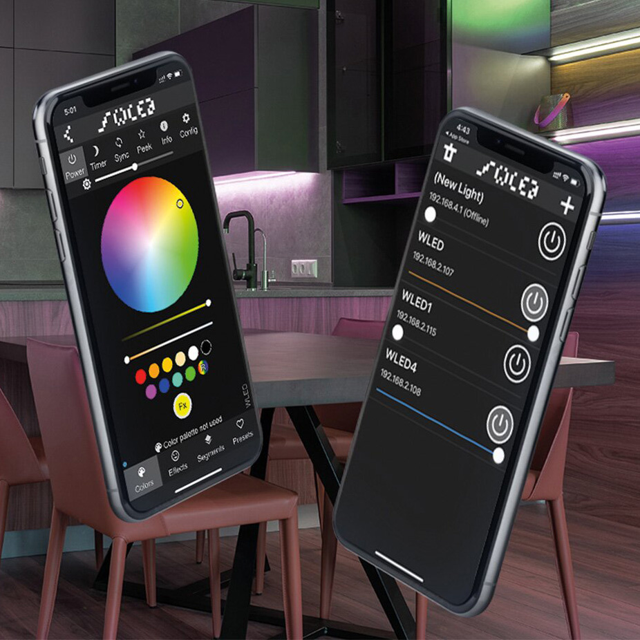 Inteliģents IP65 LED lentes kontrolieris ar ESP32 un WLED atbalstu iekštelpu/āra apgaismojuma vadībai. Savienojas ar mājas Wi‑Fi (2.4GHz) un ļauj vadīt adresējamas RGBIC LED lentes caur WLED mobilo lietotni vai tīmekļa pārlūku: krāsas, spilgtums, vairāk nekā 100 efekti, DIY efekti, segmentu individuāla vadība, sinhronizācija, taimeri, grafiki un nakts gaismas režīms. Iebūvēta daudzfunkcionāla poga (ON/OFF, krāsas maiņa, reset/WLED-AP). Atbalsta līdz 800 LED, 5–24V DC, 10A (240W), IP65 korpuss, 300mm kabeļi abās pusēs. Saderīgi čipi: WS2811, WS2812, SK6812, TM1814, WS2813, WS2815 u.c. Produkta kods: LC100.