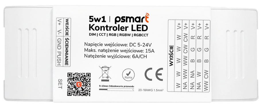 LED kontrolieris 5w1 DIM/CCT/RGB/RGBW/RGBCCT 5-24V 15A WiFi Tuya (PX sērija)