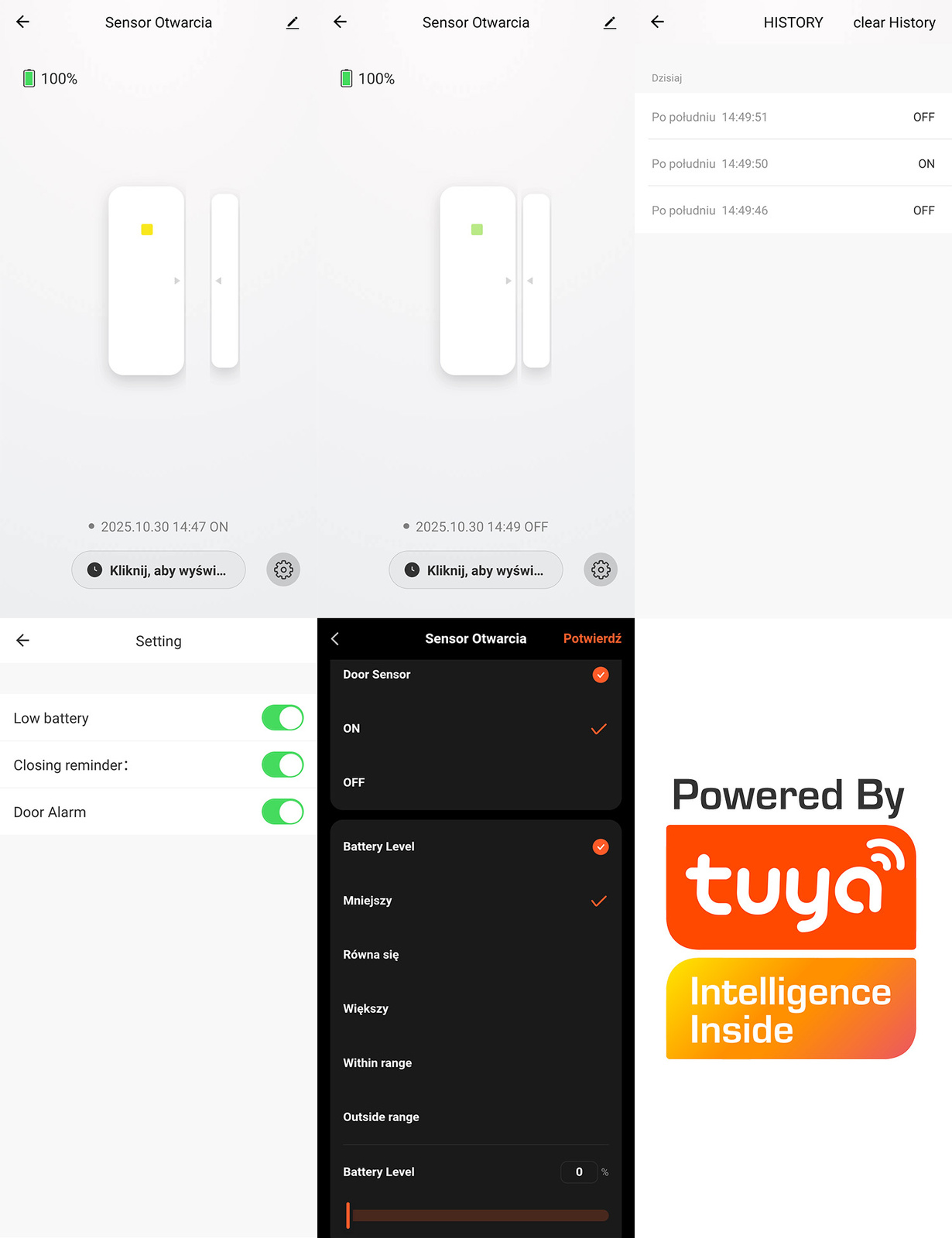 Magnētiskais durvju/logu atvēršanas sensors (niedru slēdzis) viedās mājas drošībai un automatizācijām. Sensors reāllaikā nosūta paziņojumus uz tālruni, kad durvis vai logs tiek atvērts/aizvērts, kā arī brīdina par zemu baterijas līmeni (≤2.4V). Savienojums caur ZigBee 3.0 (nepieciešama ZigBee vārteja) ar integrāciju Tuya Smart vai Smart Life lietotnē. Iespējama automatizāciju veidošana un integrācija ar Amazon Alexa un Google Assistant. Vienkārša uzstādīšana ar abpusējo līmlenti.