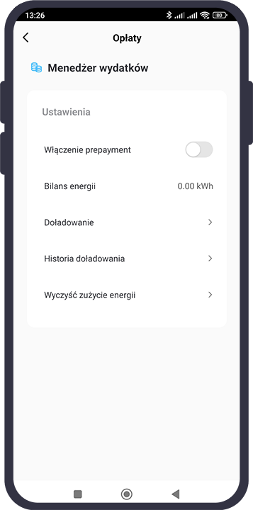 - Priekšapmaksas funkcija: iespēja atslēgt padevi pēc kWh limita pārsniegšanas