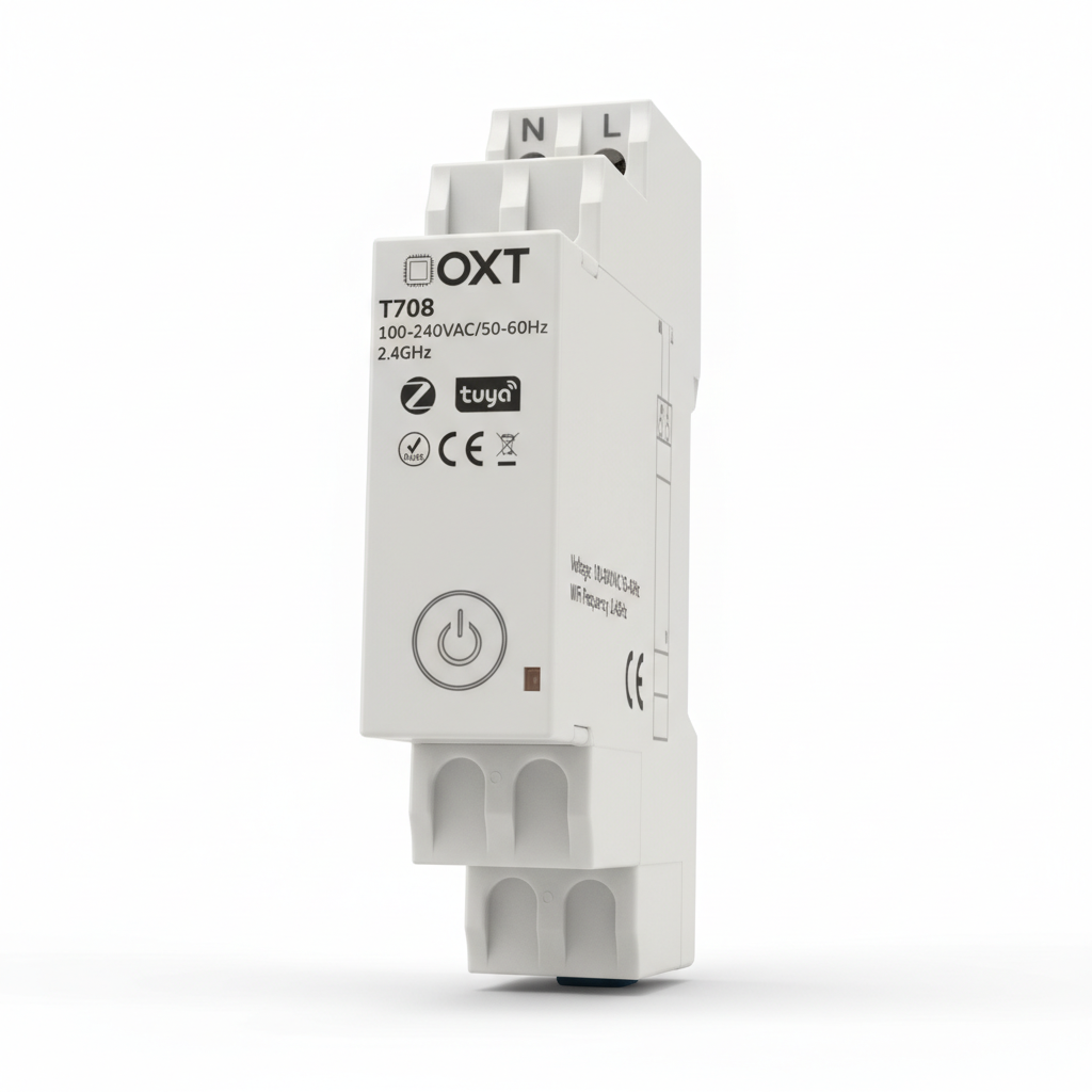 OXT TUYA ZigBee 3.0 vārteja DIN sliedei ir viedās mājas centrmezgls, kas savieno ZigBee sensorus un kontrolierus ar Tuya Smart / Smart Life lietotni, izmantojot Wi‑Fi 2.4GHz. Paredzēta profesionālai montāžai 35 mm DIN sliedē sadales skapī, ar tiešu maiņstrāvas barošanu 100–240 V. Atbalsta līdz 50 ZigBee ierīcēm, nodrošina stabilāku tīklu un atslogo mājas Wi‑Fi, jo ZigBee ierīces nepieslēdzas maršrutētājam tieši. ZigBee tīkls ir šifrēts un energoefektīvs; pastāvīgi barotas ZigBee ierīces var darboties kā signāla atkārtotāji. Darbības diapazons ~20–25 m, darba temperatūra -10°C līdz 60°C. Komplektā: DIN Rail ZigBee 3.0 vārteja un lietotāja rokasgrāmata. Produkta kods: T708.