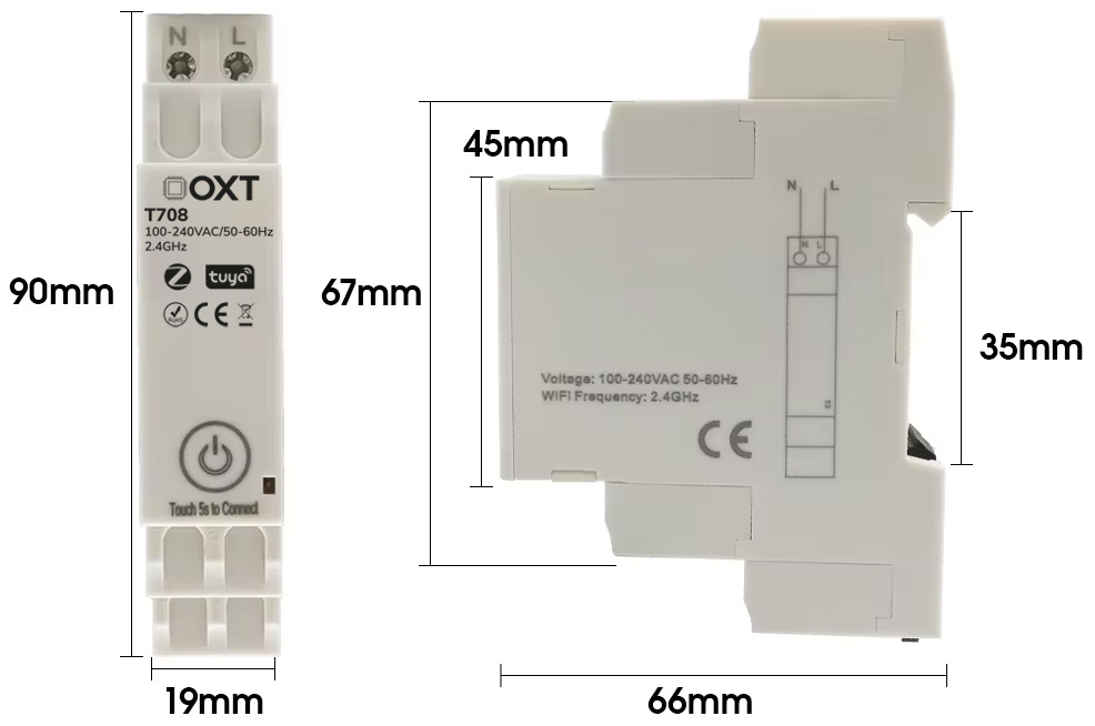 OXT TUYA WiFi DIN Rail ZigBee vārteja (ZigBee 3.0, 35mm DIN, 100–240V)