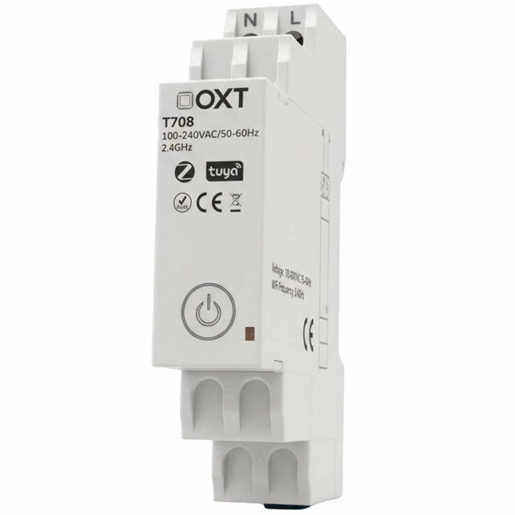 OXT TUYA ZigBee 3.0 vārteja DIN sliedei ir viedās mājas centrmezgls, kas savieno ZigBee sensorus un kontrolierus ar Tuya Smart / Smart Life lietotni, izmantojot Wi‑Fi 2.4GHz. Paredzēta profesionālai montāžai 35 mm DIN sliedē sadales skapī, ar tiešu maiņstrāvas barošanu 100–240 V. Atbalsta līdz 50 ZigBee ierīcēm, nodrošina stabilāku tīklu un atslogo mājas Wi‑Fi, jo ZigBee ierīces nepieslēdzas maršrutētājam tieši. ZigBee tīkls ir šifrēts un energoefektīvs; pastāvīgi barotas ZigBee ierīces var darboties kā signāla atkārtotāji. Darbības diapazons ~20–25 m, darba temperatūra -10°C līdz 60°C. Komplektā: DIN Rail ZigBee 3.0 vārteja un lietotāja rokasgrāmata. Produkta kods: T708.
