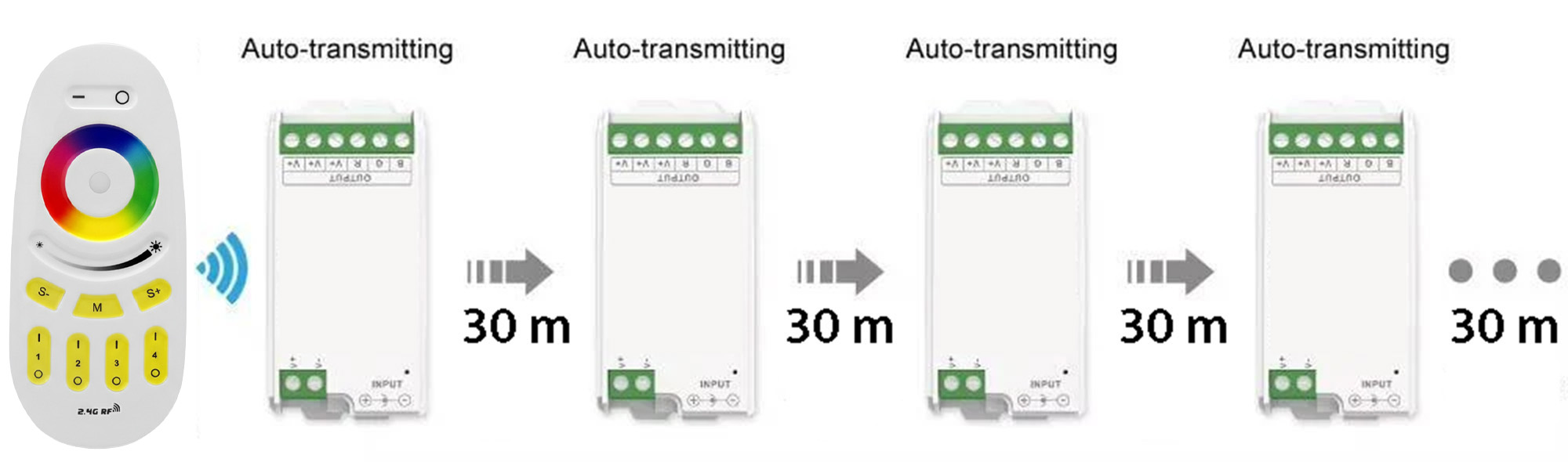 PSMART 4 zonu RF tālvadības pults RGB PX sērijas LED kontrolieriem (balta, 2.4GHz)