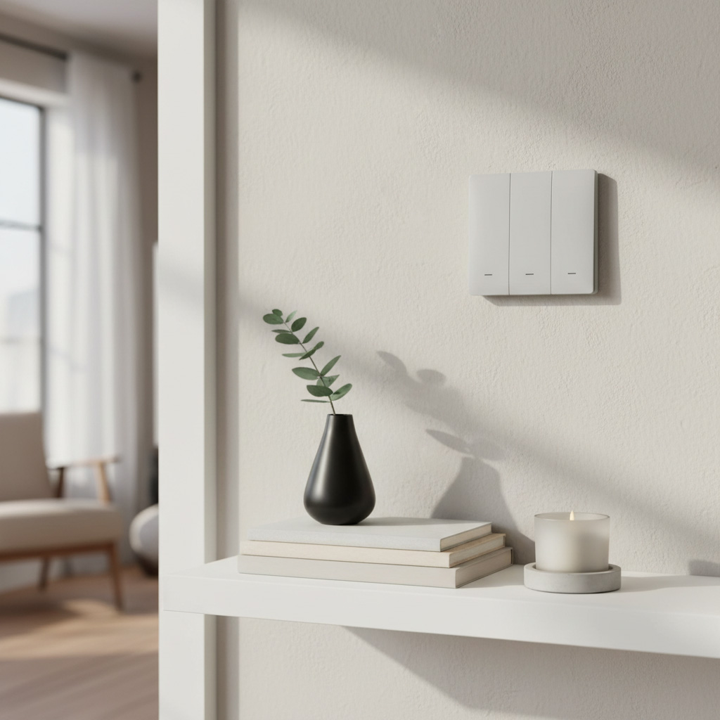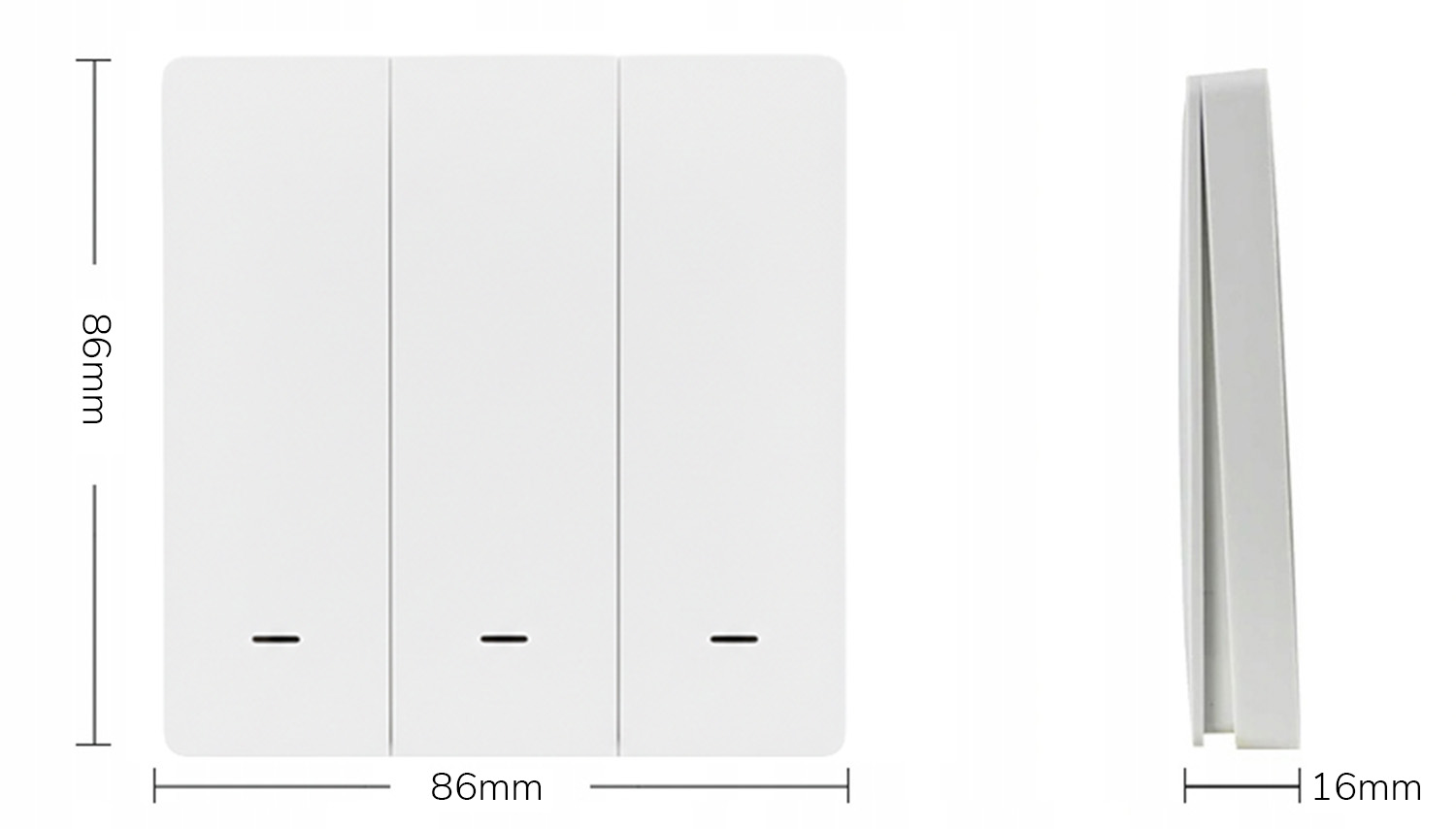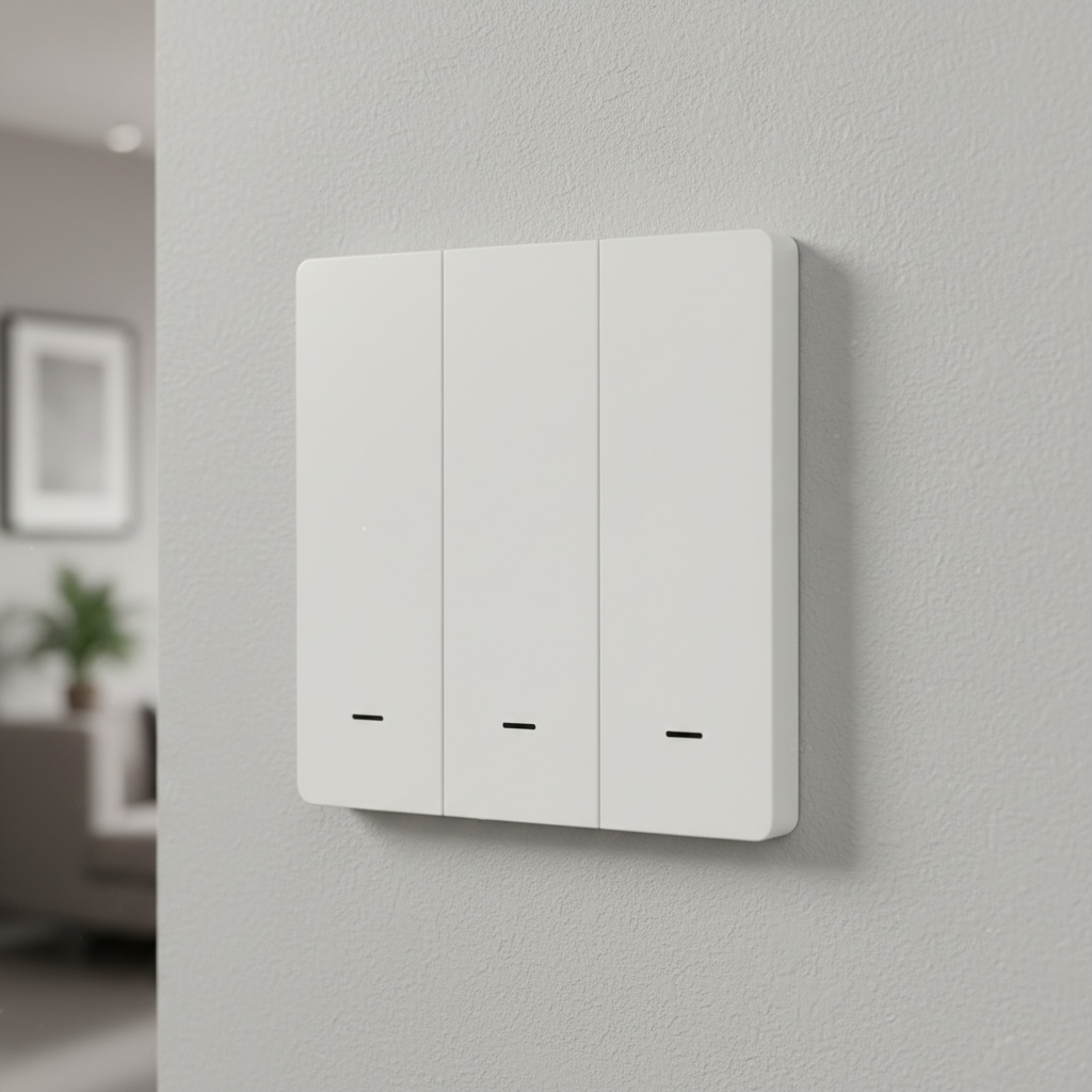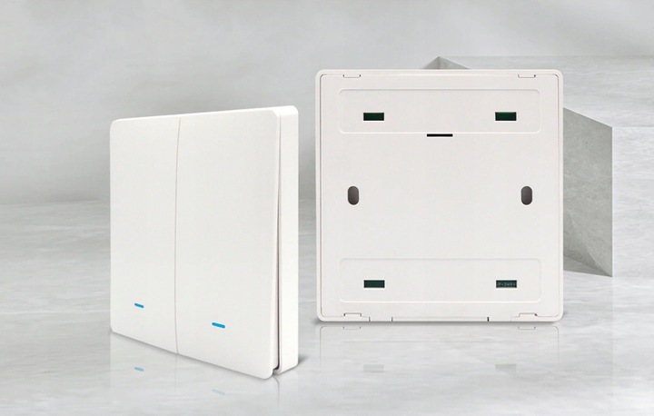 PSMART PX sērijas bezvadu sienas slēdzis/tālvadības pults ar 3 zonu atbalstu, paredzēts trīs neatkarīgu apgaismojuma grupu vadībai (ieslēgts/izslēgts katrai zonai). Komunikācija notiek ar RF 2.4GHz, nodrošinot stabilu savienojumu līdz 30 m un signāla caurlaidību caur sienām. Ierīce ir darbināma ar CR2032 bateriju, tāpēc nav nepieciešama elektroinstalācija; paredzēta virsmas montāžai (pielīmējot vai pieskrūvējot). Standarta 86×86 mm formfaktors un plāns 16 mm korpuss. Komplektā: slēdzis, CR2032 baterija, montāžas lente, lietotāja rokasgrāmata.