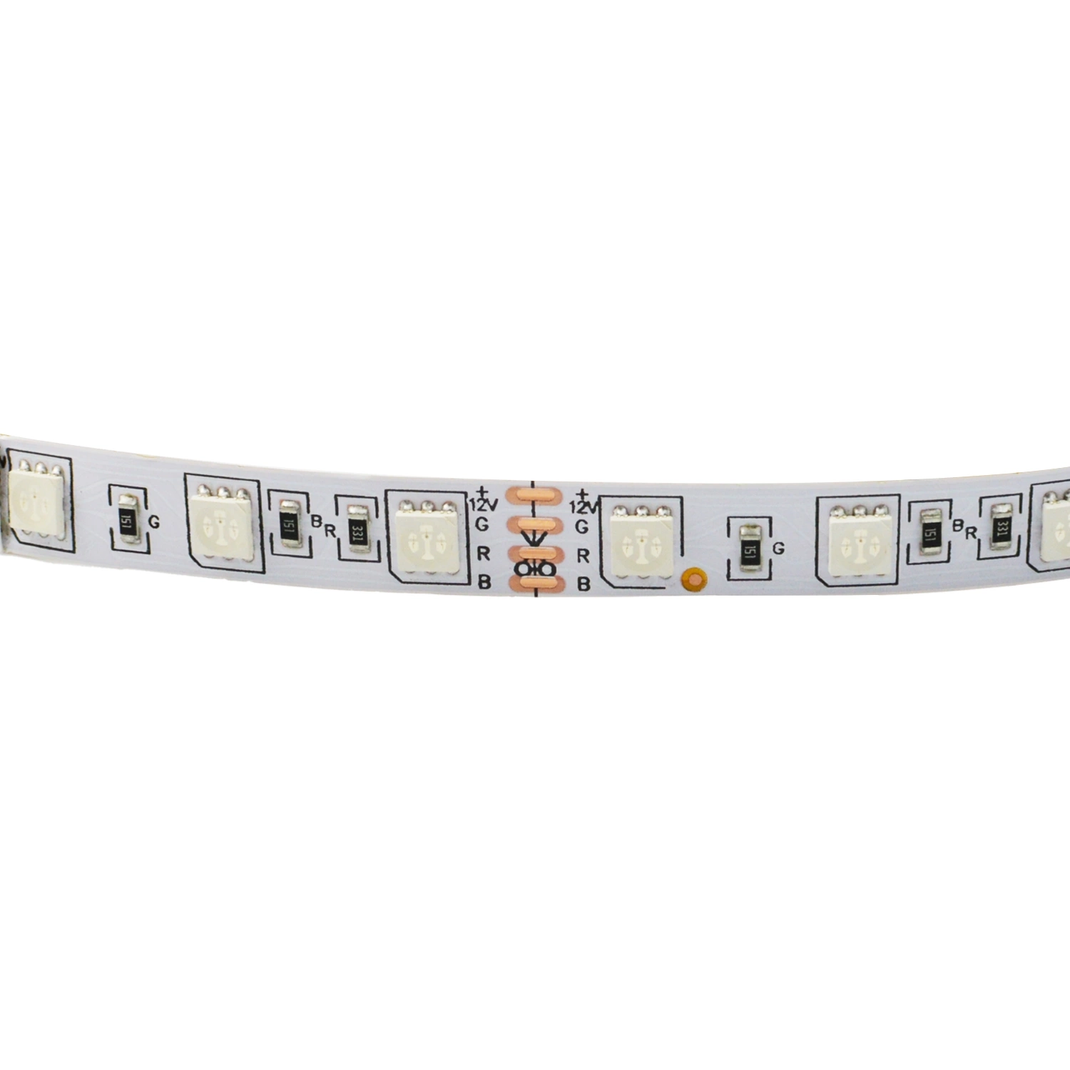 PSMART LED lente 12V RGB 5050 – daudzkrāsu dekoratīvais apgaismojums iekštelpām ar plašām krāsu un efektu iespējām, izmantojot RGB kontrolieri.
