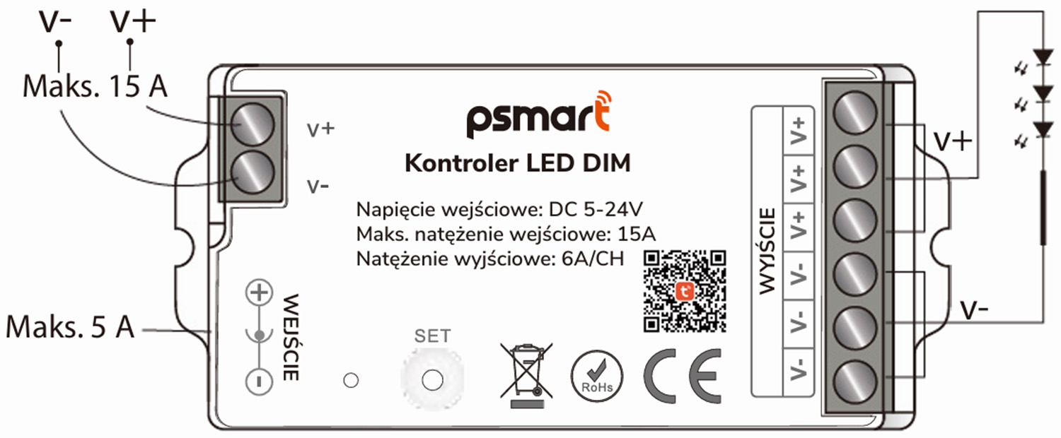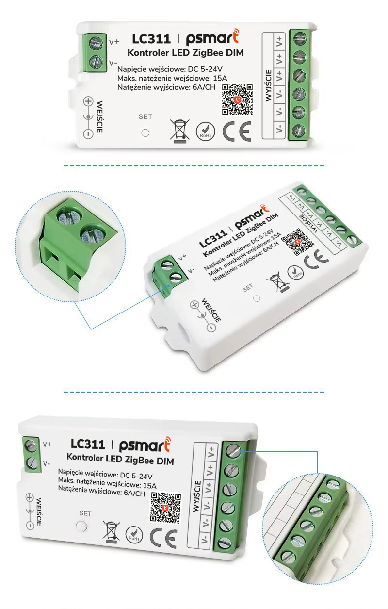 PSMART Mini ZigBee 3.0 LED dimmera kontrolieris 5-24V 15A (TUYA / Philips Hue) sērija PX