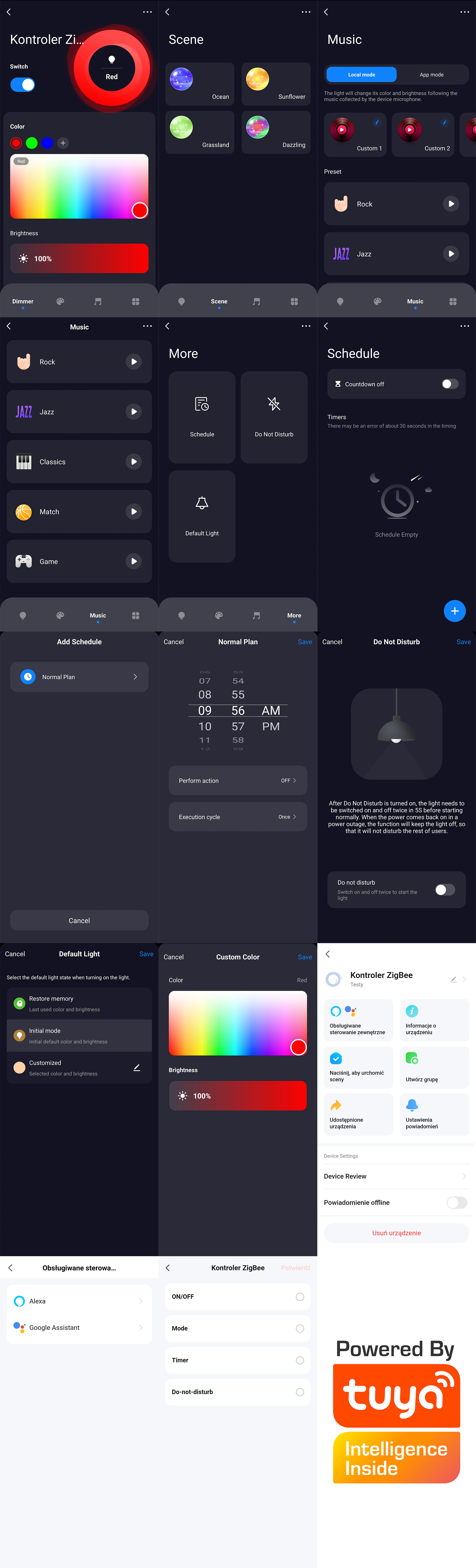 Savienojamība: ZigBee 3.0 (nepieciešama ZigBee vārteja), integrācija ar Tuya Smart/Smart Life ekosistēmu un saderība ar Philips Hue. Atbalsta balss vadību caur Google Home un Amazon Alexa (izmantojot attiecīgo ekosistēmu/vārteju). ZigBee Mesh tīkls palīdz paplašināt pārklājumu.