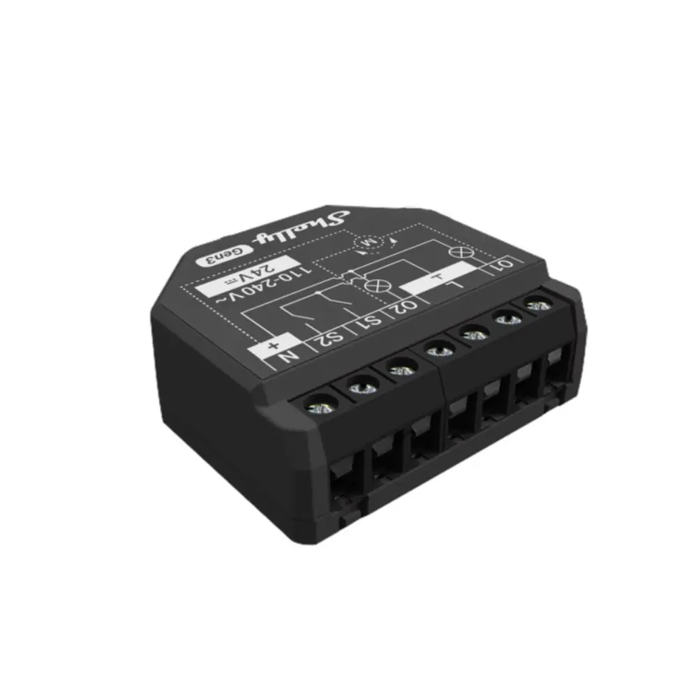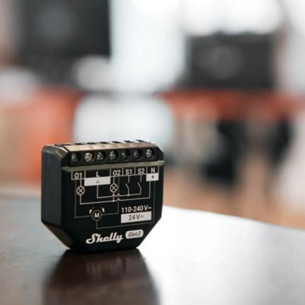 Shelly 2PM Gen3 divkanālu Wi‑Fi + Bluetooth viedais releja modulis ar jaudas mērīšanu un rullo slēģa režīmu (4 gab.)