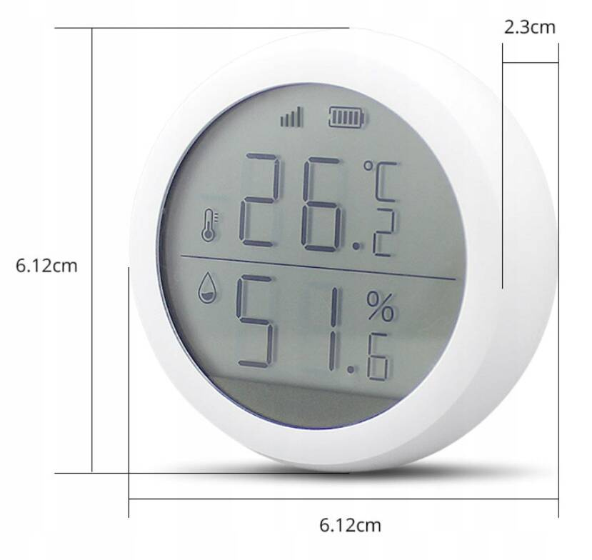ZigBee temperatūras un mitruma sensors ar LCD displeju, kas paredzēts precīzai mikroklimata uzraudzībai telpās. Ierīce darbojas ZigBee 2.4 GHz tīklā un integrējas ar Tuya Smart / Smart Life lietotni, ļaujot skatīt temperatūru un mitrumu reāllaikā, kā arī uzkrāt statistiku pa stundām, dienām, mēnešiem un gadiem.