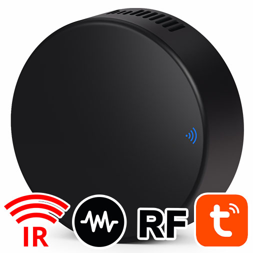 - IR + RF atbalsts: infrasarkanais (TV, dekoders, kondicionieris u.c.) un RF 433,92 MHz (piem., žalūzijas, vārti, apgaismojums)