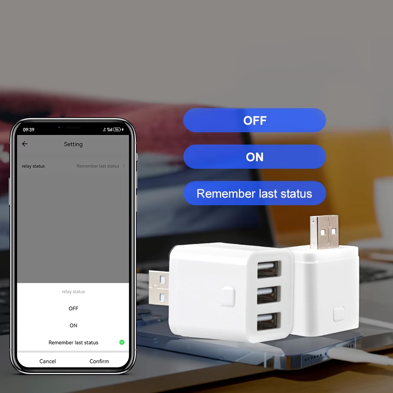 Mini slēdža ligzdas USB adapteris ar 3 kanāliem, kas ļauj attālināti vadīt pievienoto USB ierīču barošanu, izmantojot TUYA Smart vai Smart Life lietotni. Atbalsta grafikus, taimerus, darbību pēc strāvas pazušanas/atjaunošanas (ieslēgt/izslēgt/atjaunot iepriekšējo stāvokli), aktivitāšu vēsturi, grupēšanu un ierīces koplietošanu. Saderīgs ar balss vadību caur Google Home un Amazon Alexa (atkarībā no integrācijas). Komunikācijai izmanto ZigBee 3.0; pareizai darbībai nepieciešama ZigBee vārteja.