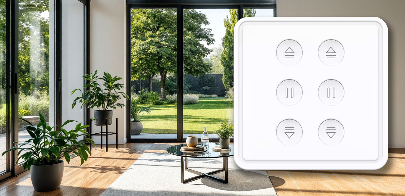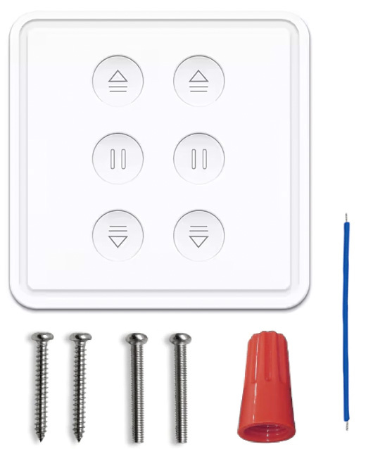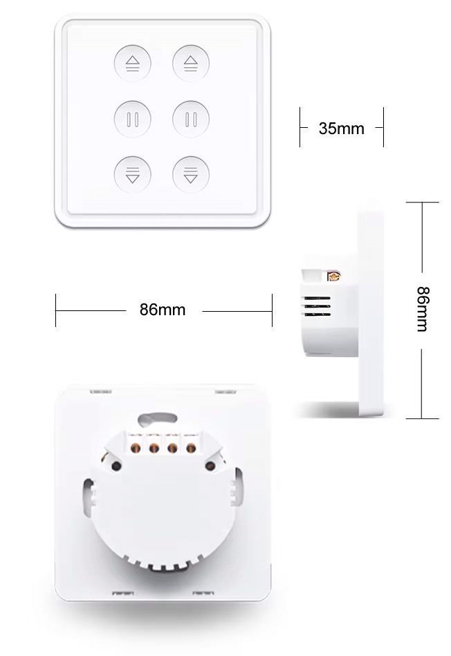 Vieds divkanālu sienas vadības panelis rullo žalūziju/aizkaru motoru pacelšanai un nolaišanai. Atbalsta vadību ar fiziskajām pogām (atvērt/aizvērt/stop katram kanālam), kā arī attālināti ar Tuya Smart vai Smart Life lietotni (Android/iOS). Iespējama balss vadība ar Google Home un Amazon Alexa, žalūziju pozīcijas regulēšana procentos, grafiki un automatizācija, kā arī ierīču grupēšana un koplietošana ģimenes locekļiem. Savietojams ar elektriskajiem žalūziju motoriem 100–250V AC, maks. slodze līdz 300W uz kanālu. Wi‑Fi 2.4GHz (5GHz neatbalsta). Elektroinstalācija: N, L1, L2, zemējums. Pirms uzstādīšanas obligāti atslēgt strāvas padevi.